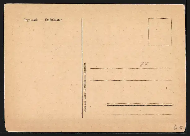 Personenbezogene Daten auf der Rückseite der Karte wurden durch blauen Textmarker unkenntlich gemacht. Die blauen Stellen sind auf die Vorderseite durchgeweicht und wirken sich negativ auf das Postkartenfoto aus