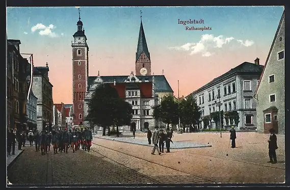AK Ingolstadt, Strasse am Rathausplatz mit Passanten