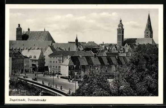 AK Ingolstadt, Teilansicht mit Donaubrücke