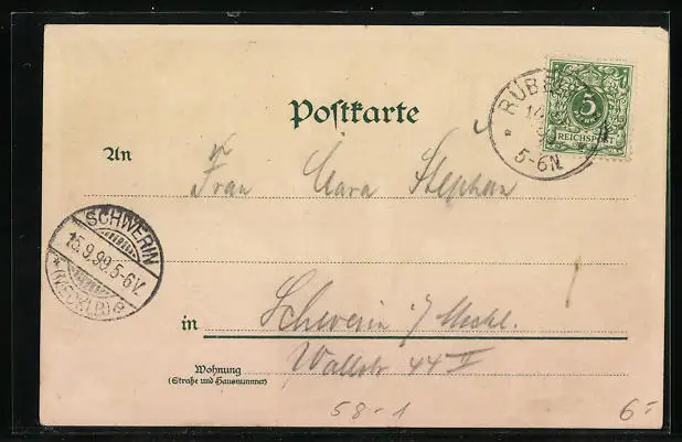 alte Ansichtskarte, gelaufen 1899, Eckknick li. oben, Abriebspuren li. oben, guter Zustand