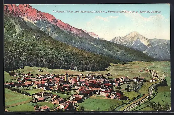 AK Innichen, Gesamtansicht mit Neunerkofl u. Dürrenstein