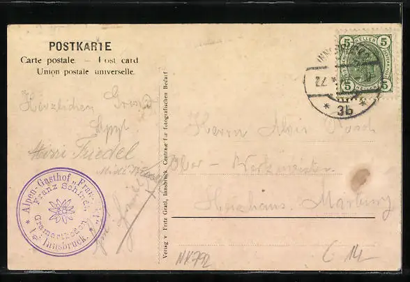 AK Innsbruck, Alpengasthof Frau Hilt