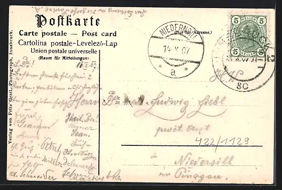 alte Ansichtskarte, gelaufen 1907, guter Zustand
