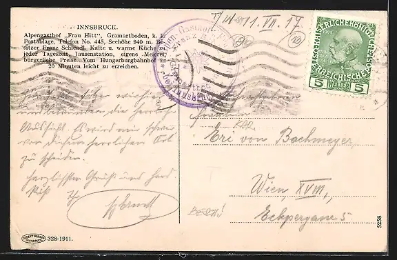 AK Innsbruck, Alpengasthof Frau Hitt mit Sattelspitzen