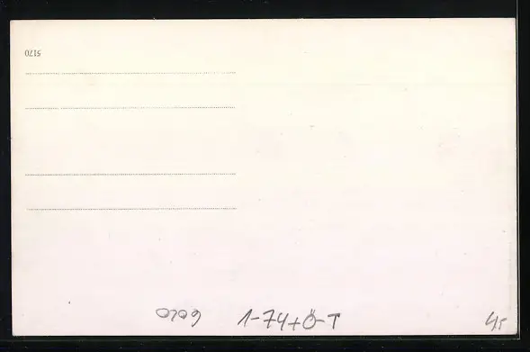 Personenbezogene Daten auf der Rückseite der Karte wurden durch blauen Textmarker unkenntlich gemacht. Die blauen Stellen sind auf die Vorderseite durchgeweicht und wirken sich negativ auf das Postkartenfoto aus