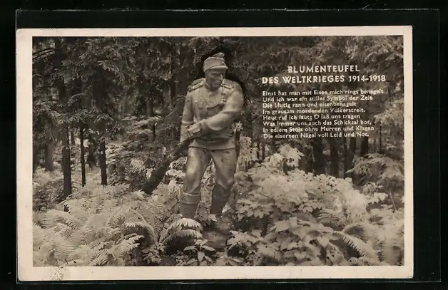 AK Innsbruck, Blumenteufel des Weltkrieges 1914-1918, Statue eines Soldaten in Uniform
