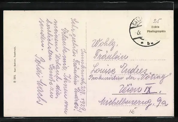 alte Ansichtskarte, gelaufen 1929, Briefmarke entfernt, rückseitig Oberflächenschaden, guter Zustand