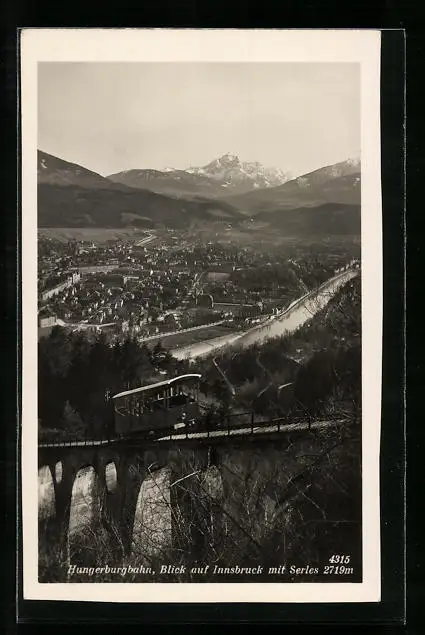 AK Innsbruck, Hungerburgbahn mit Stadtblick und Serles