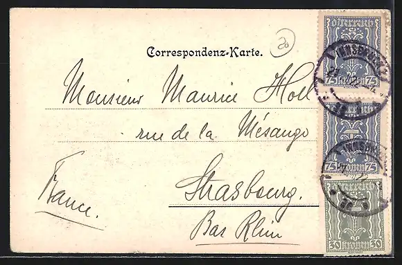 gelaufen 1922, kleiner Einriss unten mittig, guter Zustand