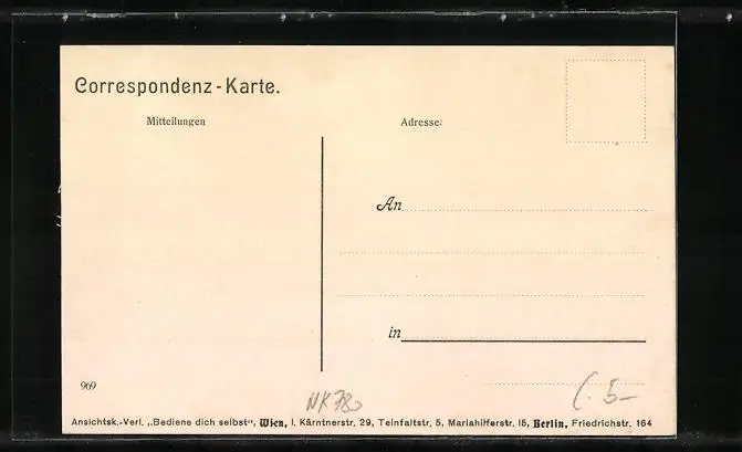 Personenbezogene Daten auf der Rückseite der Karte wurden durch blauen Textmarker unkenntlich gemacht. Die blauen Stellen sind auf die Vorderseite durchgeweicht und wirken sich negativ auf das Postkartenfoto aus