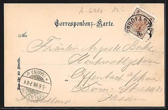 alte Ansichtskarte, gelaufen 1899, guter Zustand