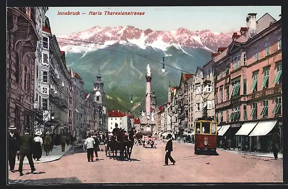 AK Innsbruck, Strassenbahn auf der Maria Theresienstrasse