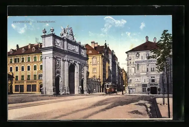 AK Innsbruck, Triumphpforte mit Strassenbahn