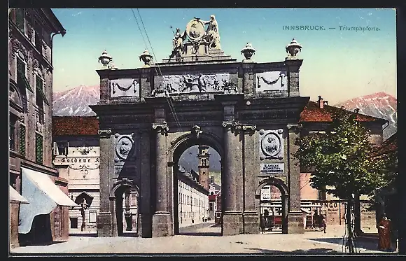 AK Innsbruck, eine Strassenbahn an der Triumphpforte