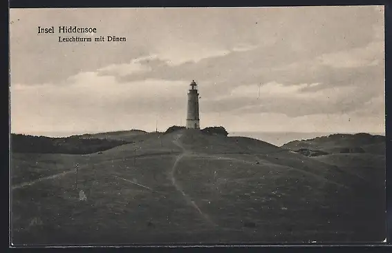 AK Insel Hiddensee, Leuchtturm mit Dünen
