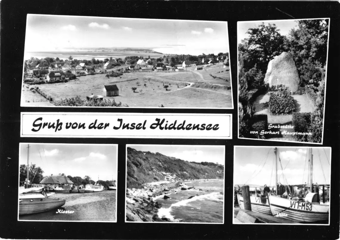 Ansichtskarte Insel Hiddensee fünf Abb. Erhaltung I-II postalisch gelaufen, gestempelt: Kloster, 1.7.68 Druckvermerk: 1967 Herstellungsland: DDR Verlag: Graphokopie H. Sander, Berlin - G2123