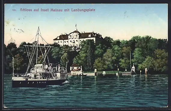 AK Insel Mainau /Bodensee, Schloss mit Landungsplatz