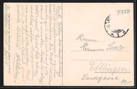 alte Ansichtskarte, gelaufen, Briefmarke entfernt, rückseitig Oberflächenschaden, Stempelspur, guter Zustand