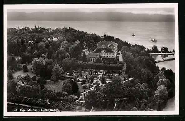 AK Insel Mainau, Parkanlagen aus der Vogelschau
