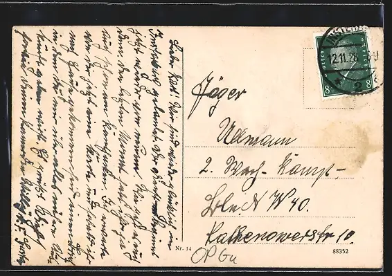 alte Ansichtskarte, gelaufen 1928, Bugspur mittig, Stempelspur, guter Zustand