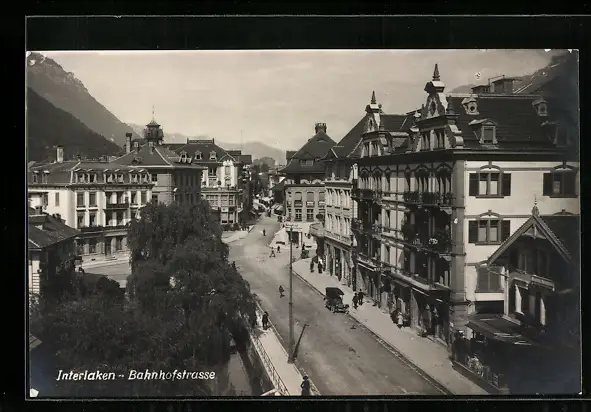 AK Interlaken, Bahnhofstrasse mit Umgebung