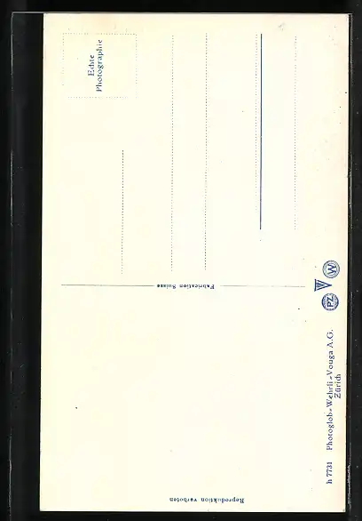 Personenbezogene Daten auf der Rückseite der Karte wurden durch blauen Textmarker unkenntlich gemacht. Die blauen Stellen sind auf die Vorderseite durchgeweicht und wirken sich negativ auf das Postkartenfoto aus