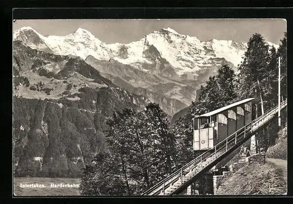 AK Interlaken, Harderbahn, Bergbahn vor Bergpanorama