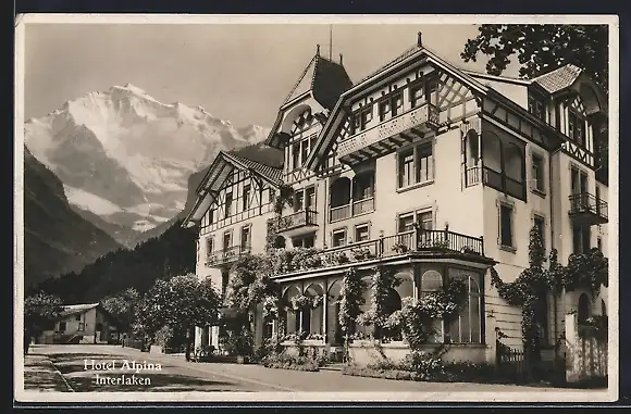AK Interlaken, Hotel Alpina mit Gebirgspanorama