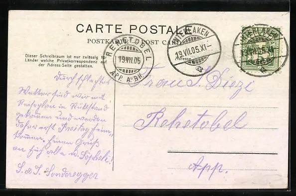 alte Ansichtskarte, gelaufen 1905, Bugspur oben mittig, guter Zustand