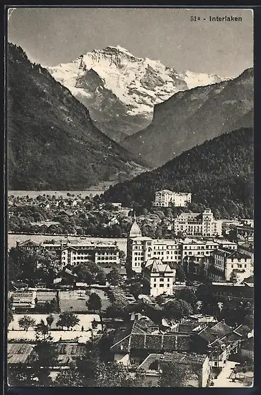 AK Interlaken, Teilansicht mit Blick zur Jungfrau