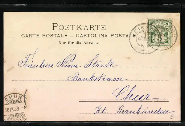 alte Ansichtskarte, gelaufen 1899, Stempelspur, guter Zustand