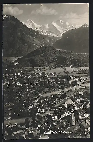 AK Interlaken-Unterseen, Teilansicht mit Bergen