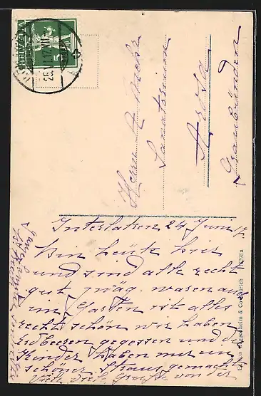 alte Ansichtskarte, gelaufen 1917, Eckknicke li. oben, minimaler Einriss oben mittig, guter Zustand