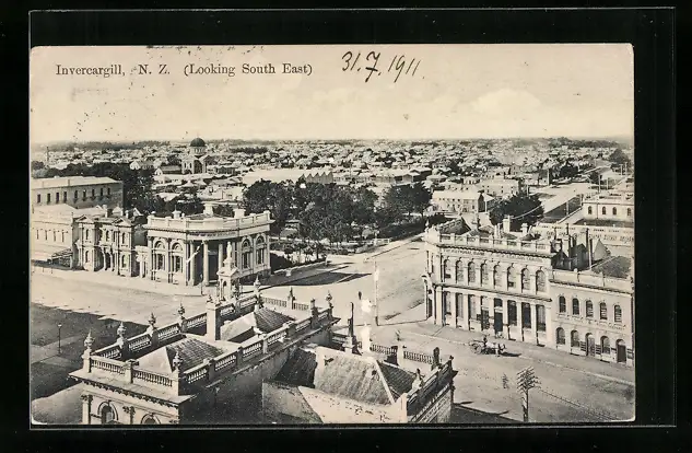 AK Invercargill, Totalansicht nach Süd-Osten aus der Vogelschau
