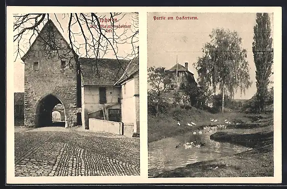 AK Iphofen, Ansicht am Mainbernheimer Tor, Partie am Hackerturm