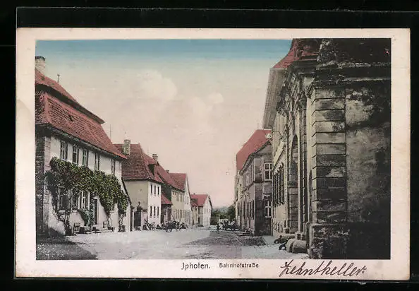 AK Iphofen, Bahnhofstrasse mit Gathaus Zehntkeller