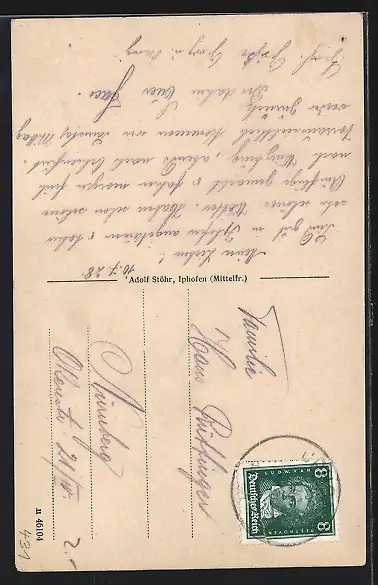 alte Ansichtskarte, gelaufen 1928, guter Zustand