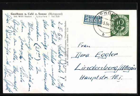 alte Ansichtskarte, gelaufen 1954, guter Zustand