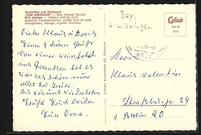 AK Iphofen, Gasthaus & Metzgerei Zum Hirschen