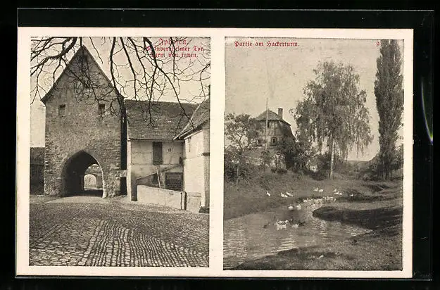 AK Iphofen, Mainbernheimer Tor, Partie am Hackerturm