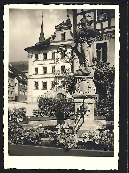 AK Iphofen, Marktplatz, mit Denkmal und Gasthof