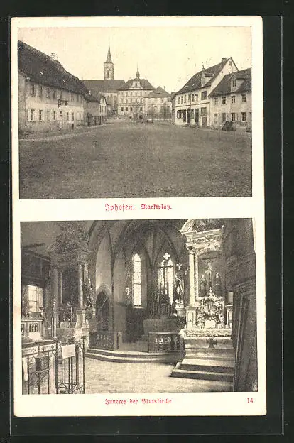 AK Iphofen, Marktplatz und Inneres der Blutskirche