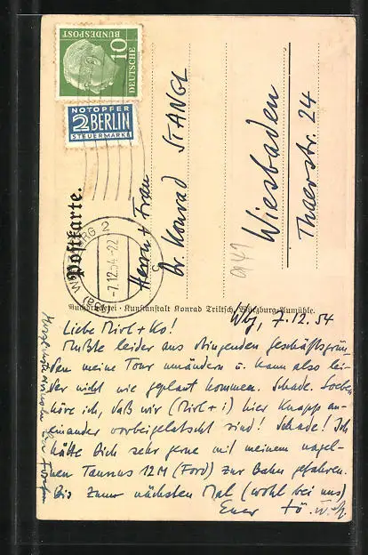 alte Ansichtskarte, gelaufen 1954, guter Zustand