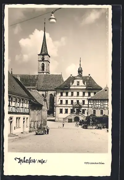 AK Iphofen /Mfr., Strassenpartie mit Gasthof