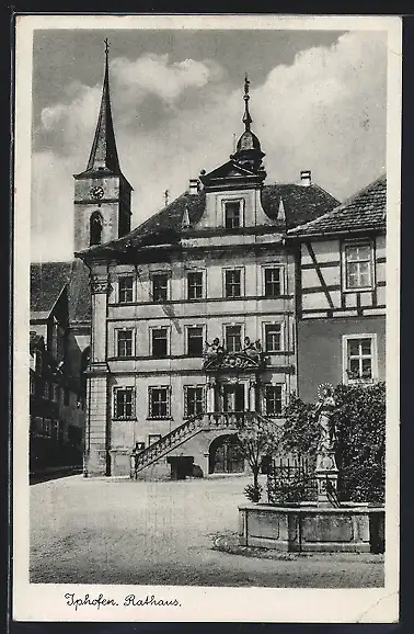 AK Iphofen, Rathaus mit Strassenpartie