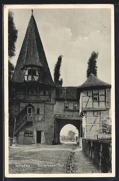 AK Iphofen, Rödelseer-Tor mit Strassenpartie