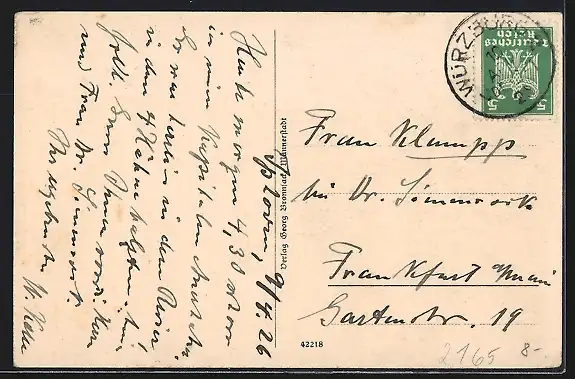 alte Ansichtskarte, gelaufen 1926, Stempelspur, guter Zustand