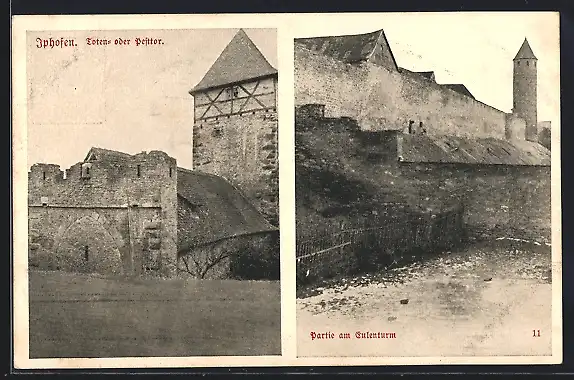 AK Iphofen, Toten- oder Pesttor, Partie am Eulenturm