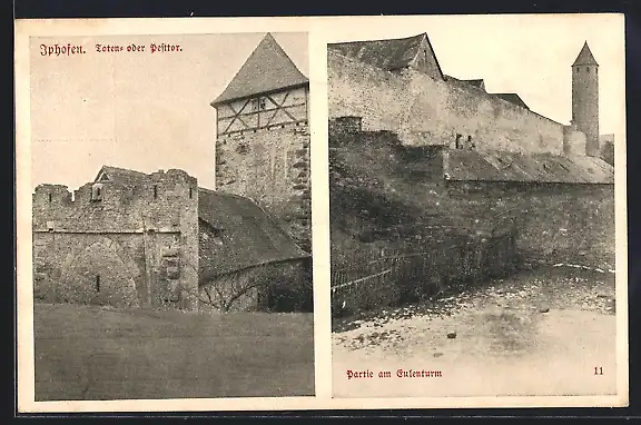 AK Iphofen, Toten- oder Pesttor, Partie am Eulenturm