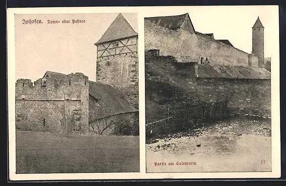 AK Iphofen, Toten- oder Pesttor, Partie am Eulenturm